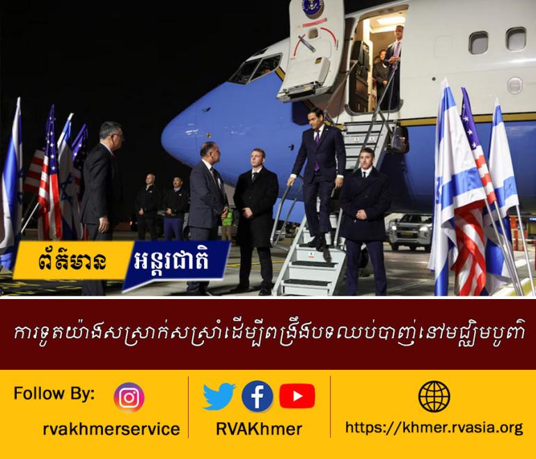 រដ្ឋមន្រ្តីការបរទេសអាម៉េរិក លោកម៉ាកកូ រូប៊ីយ៉ូ បានមកកាន់អ៊ីស្រាអែល ដែលមន្រ្តីនានានៃរដ្ឋការអាម៉េរិករបស់ប្រធានាធិបតី លោកដូណាល់ ត្រាំ បានមកជាបន្តបន្ទាប់ដើម្បីពង្រឹងបទឈប់បាញ់ដែលផុយស្រួលនៅក្នុងតំបន់ហ្គាហ្ស៉ាបន្ទាប់ពីរយៈពេល ២ឆ្នាំ នៃសង្រ្គាម។