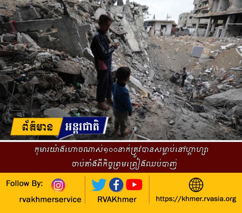 កុមារយ៉ាងហោចណាស់១០០នាក់ត្រូវបានសម្លាប់នៅហ្គាហ្សាចាប់តាំងពីកិច្ចព្រមព្រៀងឈប់បាញ់