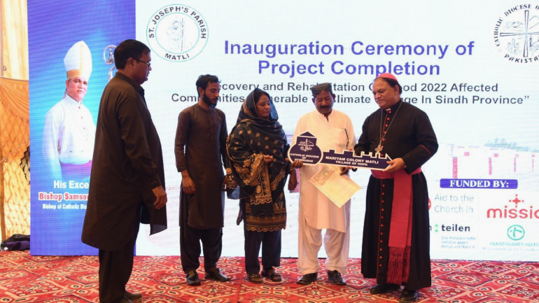 ក្រោយរងទុក្ខវេទនាដោយសារទឹកជំនន់ដ៏ធ្ងន់ធ្ងរកាលពីឆ្នាំ ២០២២ គ្រួសារគ្រីស្ទបរិស័ទចំនួន ៥០ គ្រួសារនៅក្នុង ស្រុកបាឌីន (Badin) នៅខេត្ត ស៊ិន (Sindh)ឥឡូវនេះទទួលបានផ្ទះថ្មីដែលមានភាពធន់នឹងគ្រោះមហន្តរាយ។ គម្រោងនេះដឹកនាំដោយ ភូមិភាគហៃដ្រាបាត (Hyderabad) ដើម្បីស្តារជីវភាព និងសេចក្តីថ្លៃថ្នូររបស់ជនងាយរងគ្រោះឡើងវិញ។
