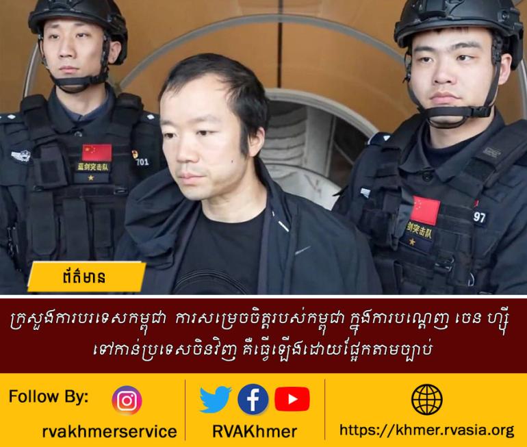 ក្រសួងការបរទេសកម្ពុជា ការសម្រេចចិត្តរបស់កម្ពុជា ក្នុងការបណ្តេញ ចេន ហ្ស៊ី ទៅកាន់ប្រទេសចិនវិញ គឺធ្វើឡើងដោយផ្អែកតាមច្បាប់