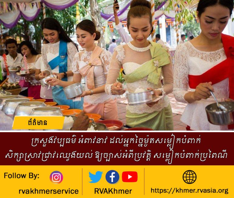 ការអំពាវនាវរបស់ ក្រសួងវប្បធម៌ បន្ទាប់ពីក្រសួងសង្កេតឃើញមានការផ្សព្វផ្សាយ សម្លៀកបំពាក់ដោយប្រើអាវផាយ ស្បៃ សំពត់ហូល ឬផាមួងមកច្នៃប្រឌិតថ្មី ដើម្បីស្លៀកពាក់បង្ហាញនៅទីសាធារណៈ ក្នុងគោលបំណងចូលរួមលើកតម្កើងអត្តសញ្ញាណវប្បធម៌ប្រពៃណី និងជំរុញឱ្យមានការអភិរក្សតាមការយល់ដឹងរៀងៗខ្លួន ដែលសុទ្ធតែជាសកម្មភាពគួរជាទីគោរព និងលើកទឹកចិត្ត។