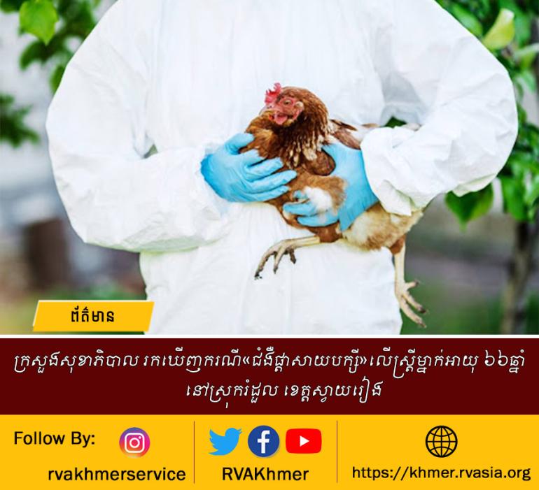 ក្រសួងសុខាភិបាល រកឃើញករណី ជំងឺផ្តាសាយបក្សី លើស្ត្រីម្នាក់អាយុ ៦៦ឆ្នាំ នៅស្រុករំដួល ខេត្តស្វាយរៀង