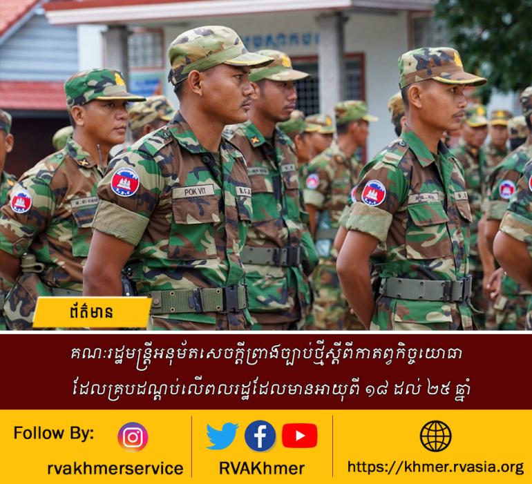 គណៈរដ្ឋមន្ត្រីអនុម័តសេចក្តីព្រាងច្បាប់ថ្មីស្តីពីកាតព្វកិច្ចយោធា ដែលគ្របដណ្តប់លើពលរដ្ឋដែលមានអាយុពី ១៨ ដល់ ២៥ ឆ្នាំ
