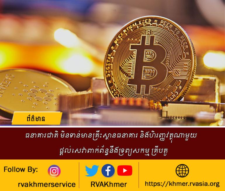 ធនាគារជាតិ មិនទាន់មានគ្រឹះស្ថានធនាគារ និងហិរញ្ញវត្ថុណាមួយ ផ្តល់សេវាពាក់ព័ន្ធនឹងទ្រព្យសកម្ម គ្រីបតូ