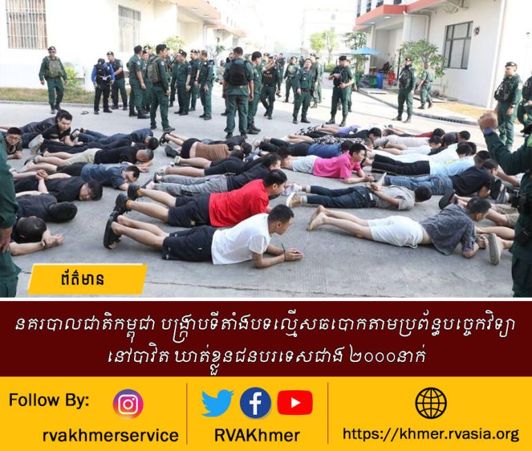 នគរបាលជាតិកម្ពុជា បង្ក្រាបទីតាំងបទល្មើសឆបោកតាមប្រព័ន្ធបច្ចេកវិទ្យា នៅបាវិត ឃាត់ខ្លួនជនបរទេសជាង ២០០០នាក់