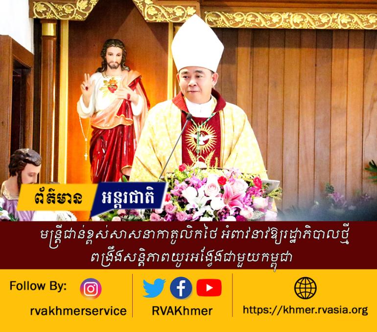 មន្ត្រីជាន់ខ្ពស់សាសនាកាតូលិកថៃ អំពាវនាវឱ្យរដ្ឋាភិបាលថ្មី ពង្រឹងសន្តិភាពយូរអង្វែងជាមួយកម្ពុជា