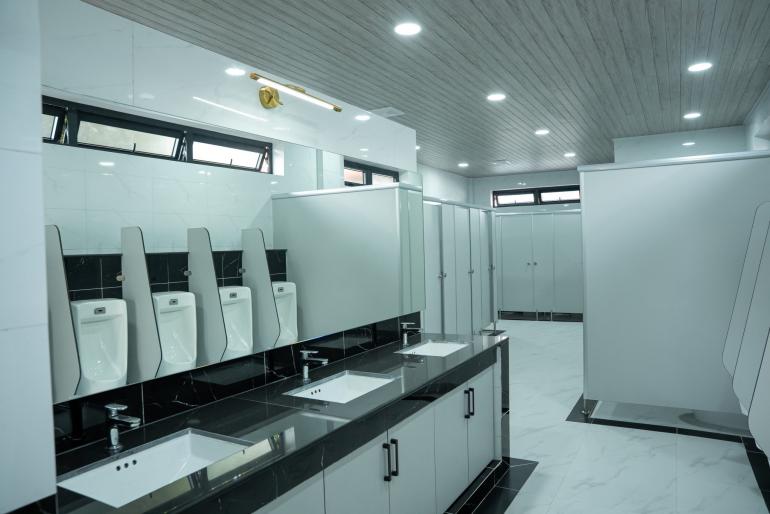 បន្ទប់ទឹកទំនើបមួយកន្លែងនេះ សម្រាប់ប្រជាពលរដ្ឋមកកំសាន្តសប្បាយនៅសួនច្បារនិង ផ្លូវថ្មើរជើងមាត់ទន្លេ ដែលក្នុងនោះមានបង្គន់បុរស-នារីចំនួន ២៥បន្ទប់ បង្គន់សម្រាប់ជនពិការចំនួន ១បន្ទប់ កន្ថោរនោមចំនួន ១៦កំប្លេរ និងឡាវ៉ាបូលាងដៃចំនួន ១០កំប្លេរ។