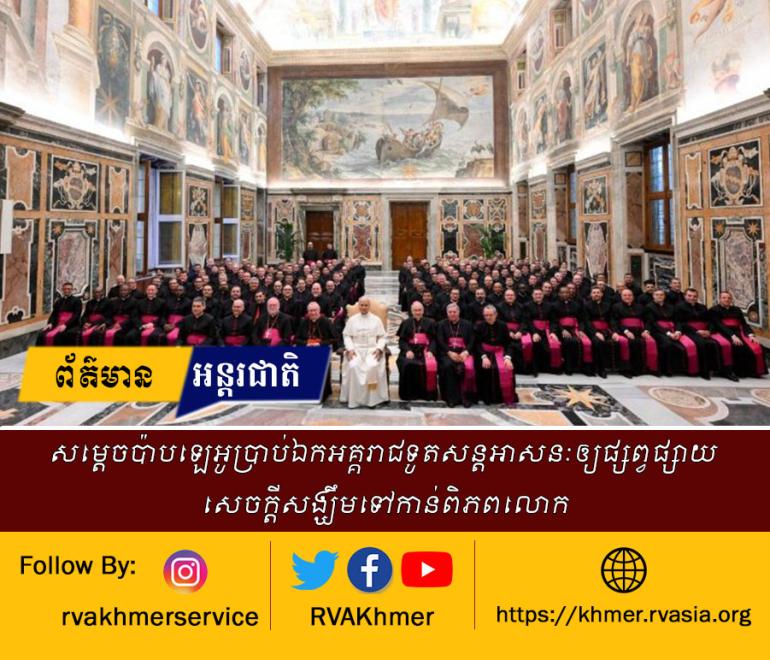 សម្តេចប៉ាបឡេអូប្រាប់ឯកអគ្គរាជទូតសន្តអាសនៈឲ្យផ្សព្វផ្សាយសេចក្តីសង្ឃឹមទៅកាន់ពិភពលោក