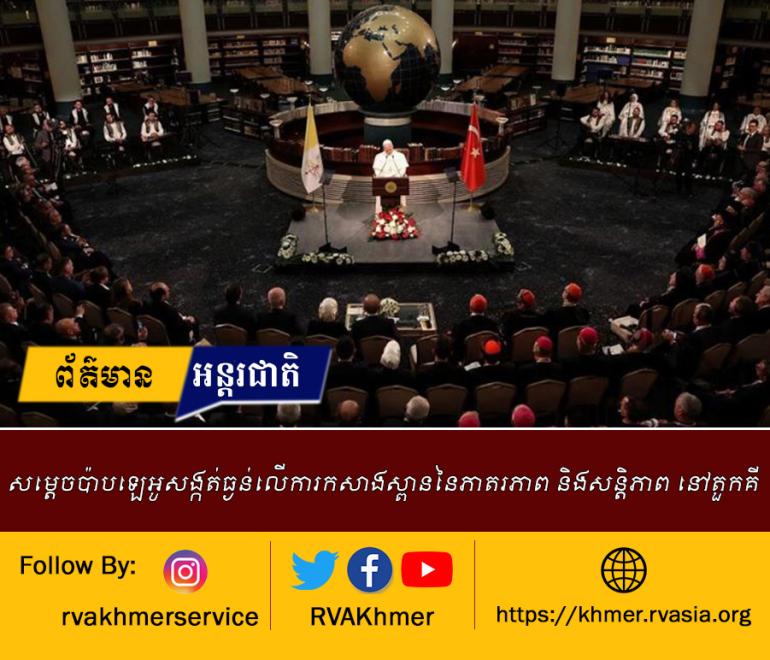 សម្តេចប៉ាបឡេអូសង្កត់ធ្ងន់លើការកសាងស្ពាននៃភាតរភាព និងសន្តិភាព នៅតួកគី