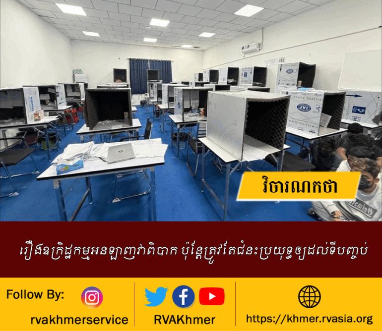 នេះគឺជាទឡ្ហីករណ៍មួយរបស់គេ ប៉ុន្តែទោះបីជាយ៉ាងណាក៏ដោយ កម្ពុជាមកដល់ពេលនេះគឺបានកំពុង តែធ្វើកិច្ចការនេះយ៉ាងយកចិត្តទុកដាក់ ហើយគិតចាប់តាំងខែមិថុនា ដល់ ដើមខែធ្នូនេះ កម្ពុជាបានឃាត់ខ្លួនជនសង្ស័យដែលពាក់ព័ន្ធនៅក្នុងឧក្រិដ្ឋកម្មនេះប្រមាណជា ៥ពាន់នាក់ឯណោះ ហើយនៅពេលនេះនៅតែបន្តធ្វើជាប្រចាំ ។