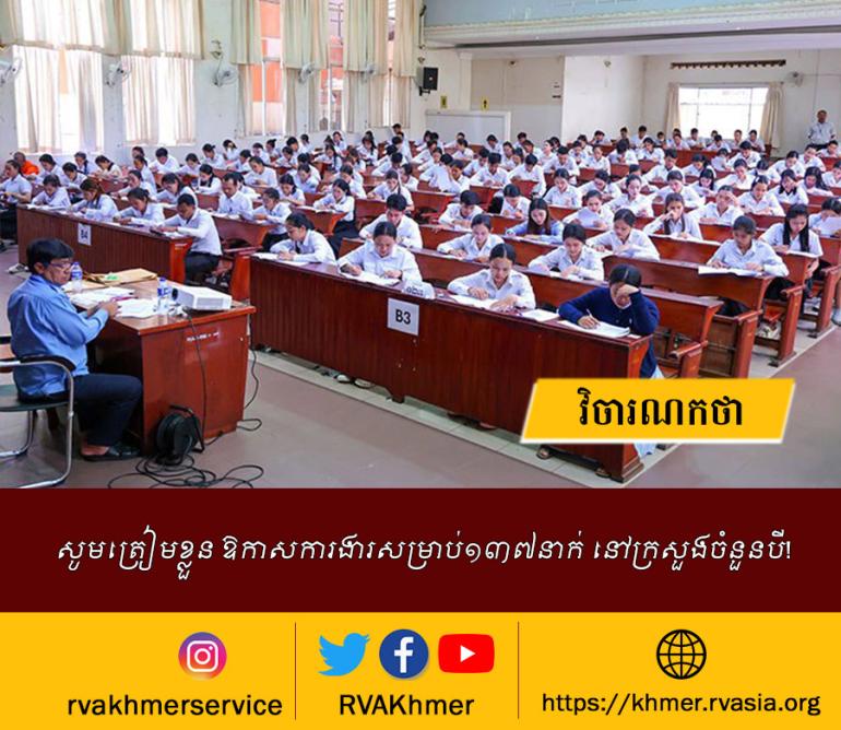 សូមត្រៀមខ្លួន ឱកាសការងារសម្រាប់១៣៧នាក់ នៅក្រសួងចំនួនបី!