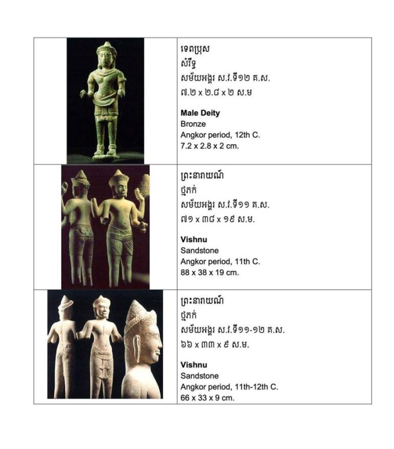 ក្រសួងវប្បធម៌ និងវិចិត្រសិល្បៈ បានអំពាវនាវ និងលើកទឹកចិត្តដល់សារមន្ទីរ និងអ្នកប្រមូលសមុច្ច័យឯកជននានា ដែលកំពុងកាន់កាប់វត្ថុបុរាណខ្មែរ ឱ្យទាក់ទងមកក្រសួង និងចូលរួមពិភាក្សាប្រកបដោយវិជ្ជាជីវៈក្នុងការប្រគល់វត្ថុបុរាណខ្មែរមកកម្ពុជាវិញ៕