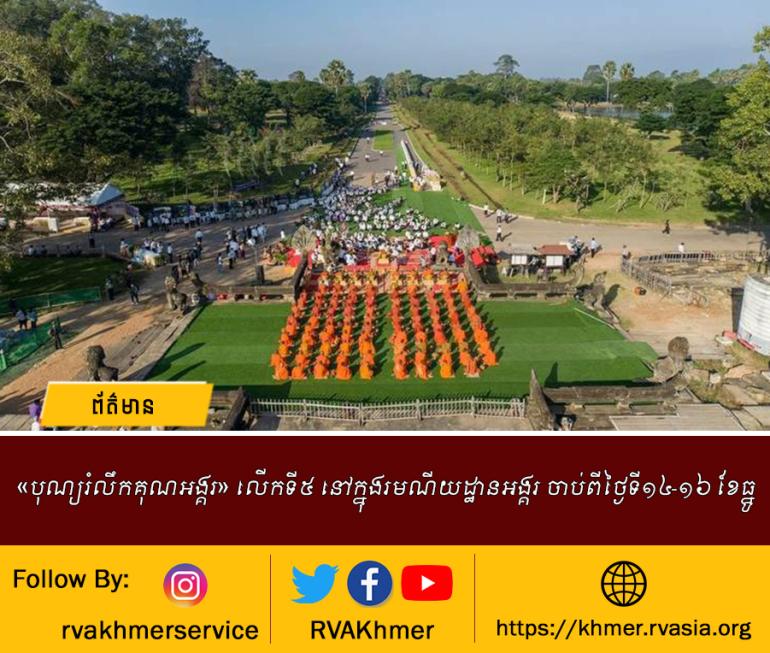 បុណ្យរំលឹកគុណអង្គរ លើកទី៥ នៅក្នុងរមណីយដ្ឋានអង្គរ ចាប់ពីថ្ងៃទី១៤-១៦ ខែធ្នូ