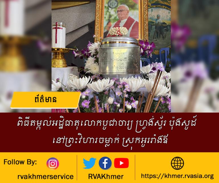 នៅថ្ងៃទី២២ ខែតុលា ឆ្នាំ២០២៥ នេះ ព្រះសហគមន៍កាតូលិកចម្លាក់ ស្រុកអូររាំងឪ (ភូមិភាគកំពង់ចាម) បានប្រារព្ធពិធីដ៏មានសារៈសំខាន់មួយ គឺ ពិធីអភិបូជា និងតម្កល់អដ្ឋិធាតុ របស់លោកបូជាចារ្យ ហ្វ្រង់ស្វ័រ ប៉ុងសូដ៍ (François Ponchaud)។