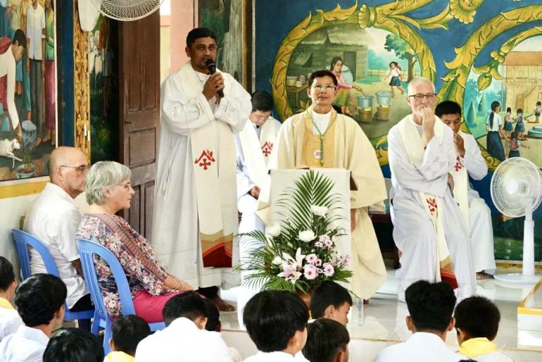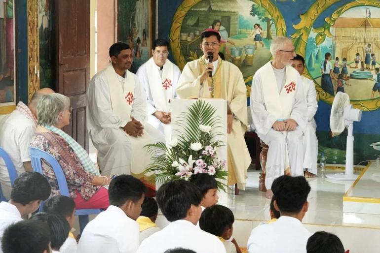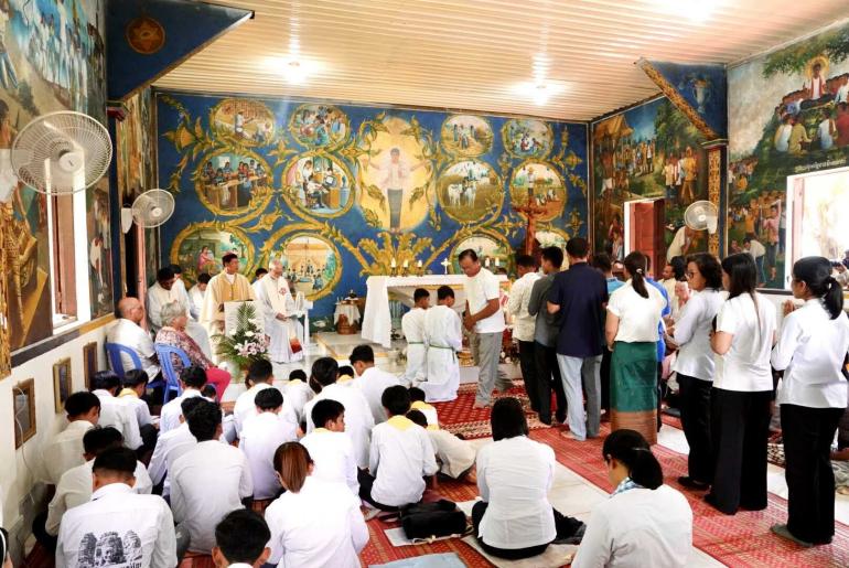 ពិធីដ៏ឧឡារិកនេះ កំពុងប្រារព្ធឡើងក្រោមអធិបតីភាពផ្ទាល់របស់ លោកអភិបាល សិលា សួន ហង្សលី ដែលជាអភិបាលព្រះសហគមន៍កាតូលិកភូមិភាគកំពង់ចាម ដោយមានលោកបូជាចារ្យ និងគ្រីស្តបរិស័ទចូលរួមយ៉ាងច្រើនកុះករ។