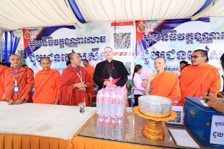 During this difficultly period, Bishop Olivier has consistently demonstrated solidarity through various humanitarian channels, including: • 2,000 USD donated to Most Venerable Samdech Preah Prohm Ratanamony Pin Sem Sirisuvanṇo, in Siem Reap province. • 1,500 USD donated to the Ministry of Cults and Religions.