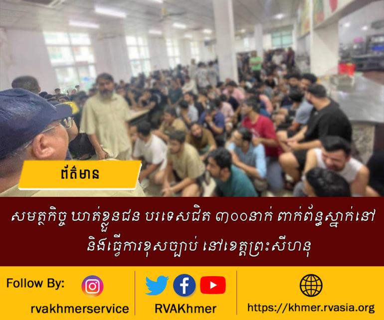 សមត្ថកិច្ច ឃាត់ខ្លួនជន បរទេសជិត ៣០០នាក់ ពាក់ព័ន្ធស្នាក់នៅ និងធ្វើការខុសច្បាប់ នៅខេត្តព្រះសីហនុ