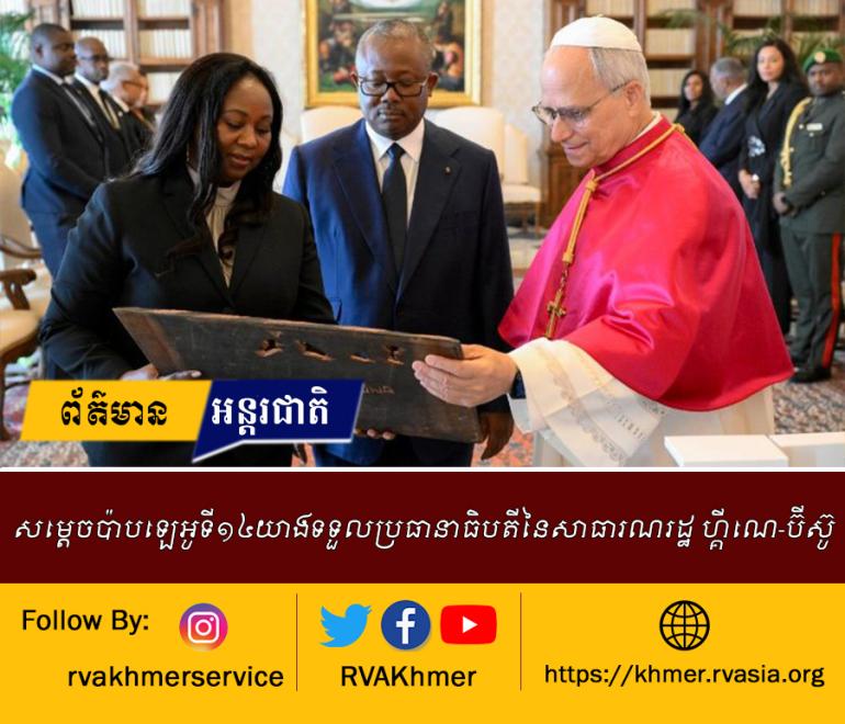 សម្តេចប៉ាប ឡេអូទី១៤ បានយាងទទួលប្រធានាធិបតីនៃសាធារណរដ្ឋហ្គីណេ-ប៊ីស៊ូ លោក យូម៉ារ៉ូ ស៊ីសូកូ អេមបាឡូ ( Umaro Sissoco Embaló) នៅបុរីវ៉ាទីកង់កាលពីថ្ងៃចន្ទ ហើយក្នុងអំឡុងពេលពិភាក្សា ភាគីទាំងពីបានលើកឡើងពី ការរួមចំណែករបស់ព្រះសហគមន៍ កាតូលិកនៅក្នុងប្រទេស។