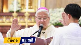 ក្នុងពិធីបុណ្យចម្លង ដែលបានប្រារព្ធឡើងយ៉ាងអធិកអធមនៅព្រះវិហារសន្តីម៉ារីចំការទៀង ស្ថិតនៅឃុំគូស ស្រុកត្រាំកក់ ខេត្តតាកែវ កាលពីយប់ថ្ងៃទី០៤ ខែមេសា ឆ្នាំ២០២៦ កន្លងទៅនេះ លោកអភិបាល អូលីវីយ៉េ ជ្មីតហស្លេ អភិបាលនៃព្រះសហគមន៍កាតូលិកភូមិភាគភ្នំពេញ បានថ្លែងសារលិខិតលើកទឹកចិត្តដល់គ្រីស្តបរិស័ទ ឱ្យជឿជាក់លើជ័យជម្នះនៃជីវិត និងរួមគ្នាកសាងពិភពលោកមួយដែលពោរពេញដោយក្តីស្រឡាញ់។