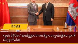 លោក សុខ ចិន្តាសោភា រដ្ឋមន្ត្រីការបរទេស និងសហប្រតិបត្តិការអន្តរជាតិ បានជួបពិភាក្សាការងារទ្វេភាគីប្រកបដោយផ្លែផ្កាជាមួយឯកឧត្តម វ៉ាង យី (WANG Yi) សមាជិកការិយាល័យនយោបាយ ប្រធានការិយាល័យគណៈកម្មការកិច្ចការបរទេស នៃគណៈកម្មាធិការមជ្ឈិមបក្សកុម្មុយនីស្តចិន និងជារដ្ឋមន្រ្តីការបរទេសនៃសាធារណរដ្ឋប្រជាមានិតចិន ក្នុងអំឡុងទស្សនកិច្ចផ្លូវការរបស់លោកនៅកម្ពុជា។
